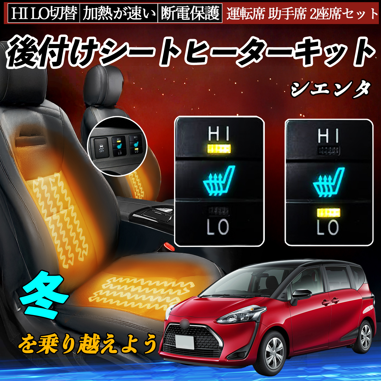 シエンタ NHP170 NCP175 NSP170 172 後付け シートヒーターキット シート ヒーター スイッチ HI LO 切替 寒さ対策グッズ 運転席 助手席 セット WeCar
