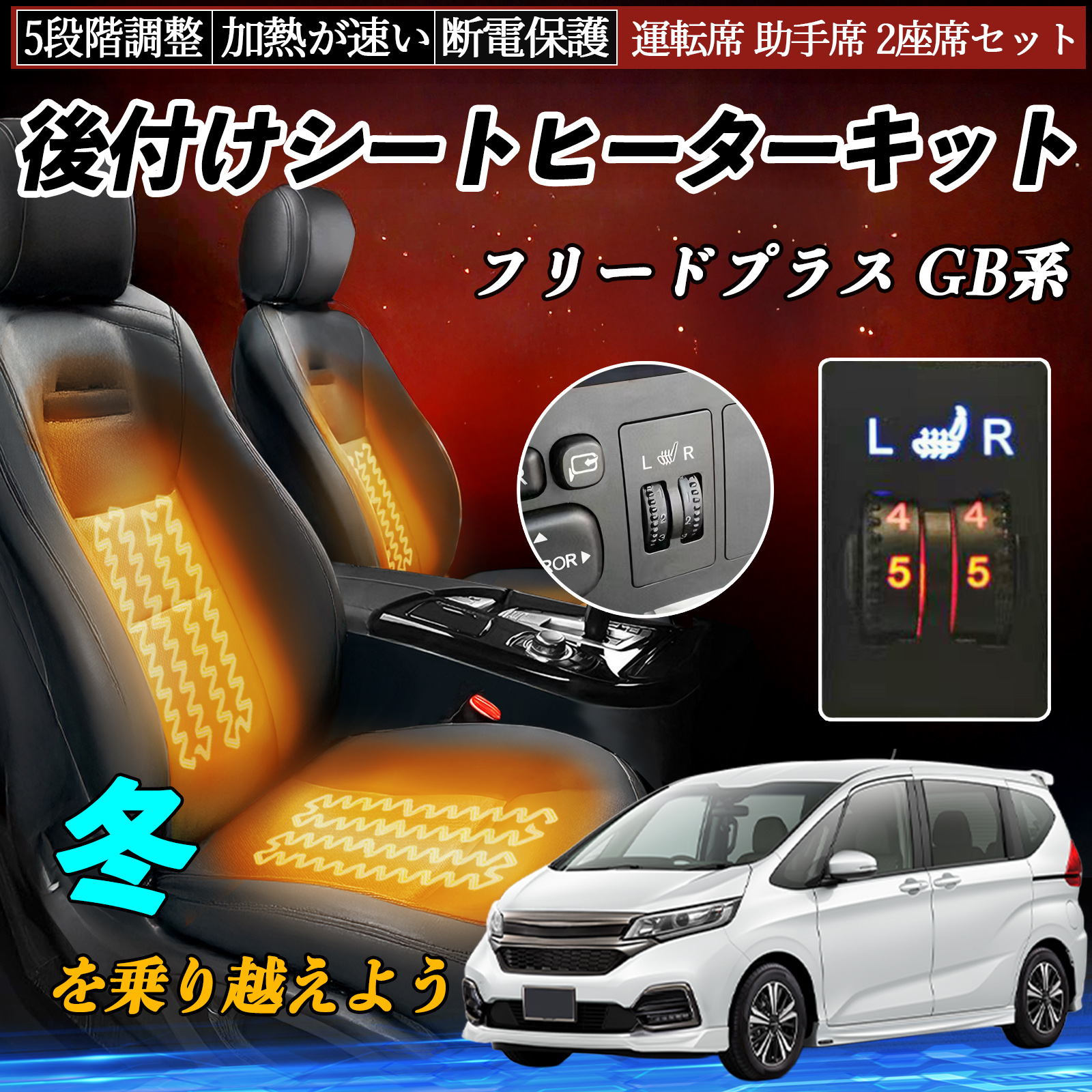 本田 フリードプラス GB系 後付け シートヒーターキット シート ヒーター スイッチ ダイヤル調整 5段階調整 運転席 助手席セット WeCar