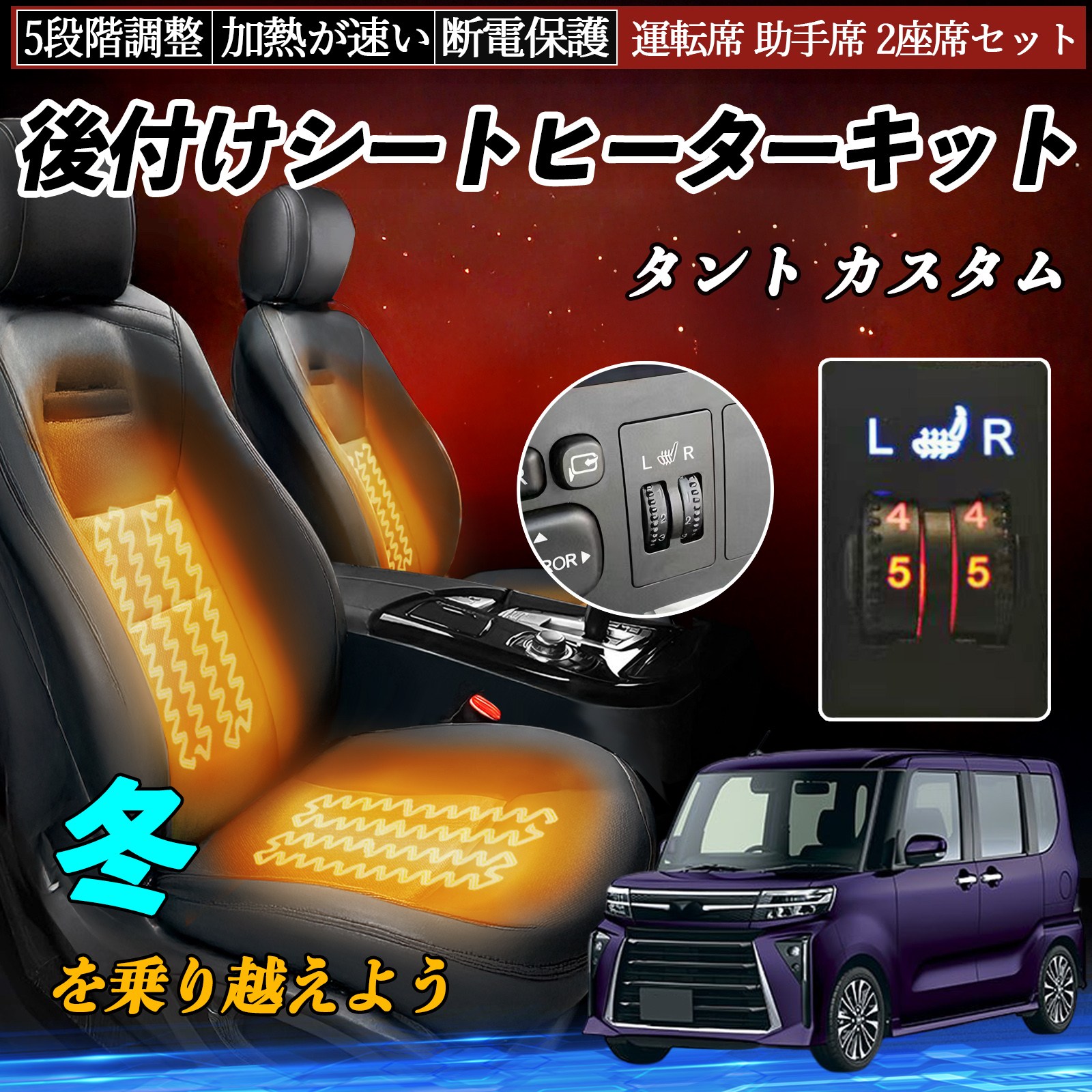 ダイハツ タント カスタム 後付け シートヒーターキット シート ヒーター スイッチ ダイヤル調整 5段階調整 運転席 助手席セット WeCar