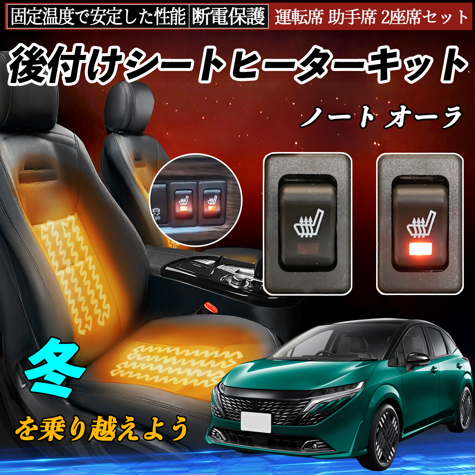 日産 ノート オーラ 後付け シートヒーターキット シート ヒーター スイッチ リレー付き配線 運転席 助手席 2座席セット WeCar