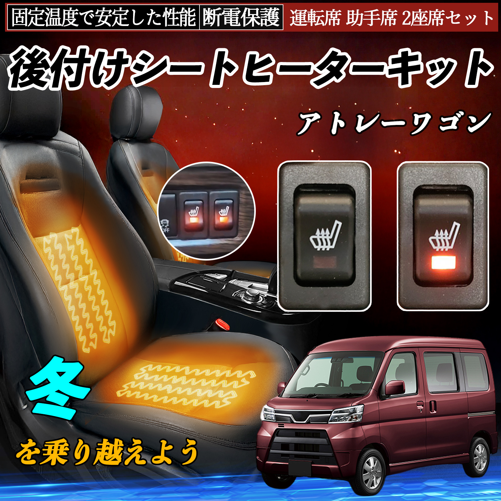 ダイハツ アトレーワゴン 後付け シートヒーターキット シート ヒーター スイッチ リレー付き配線 運転席 助手席 2座席セット WeCar