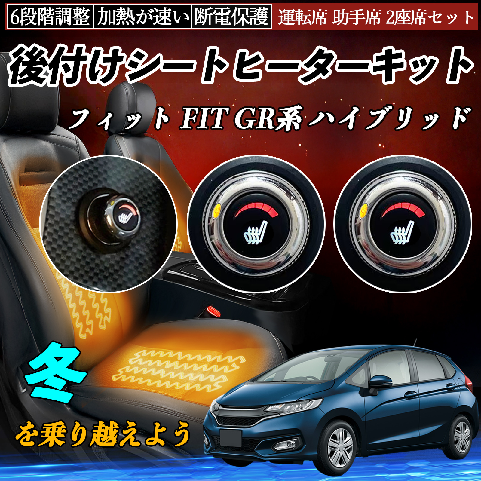 本田 フィット FIT GR系 ハイブリッド 後付け シートヒーターキット シート ヒーター スイッチ ダイヤル調整 6段階調整 運転席 助手席セット WeCar