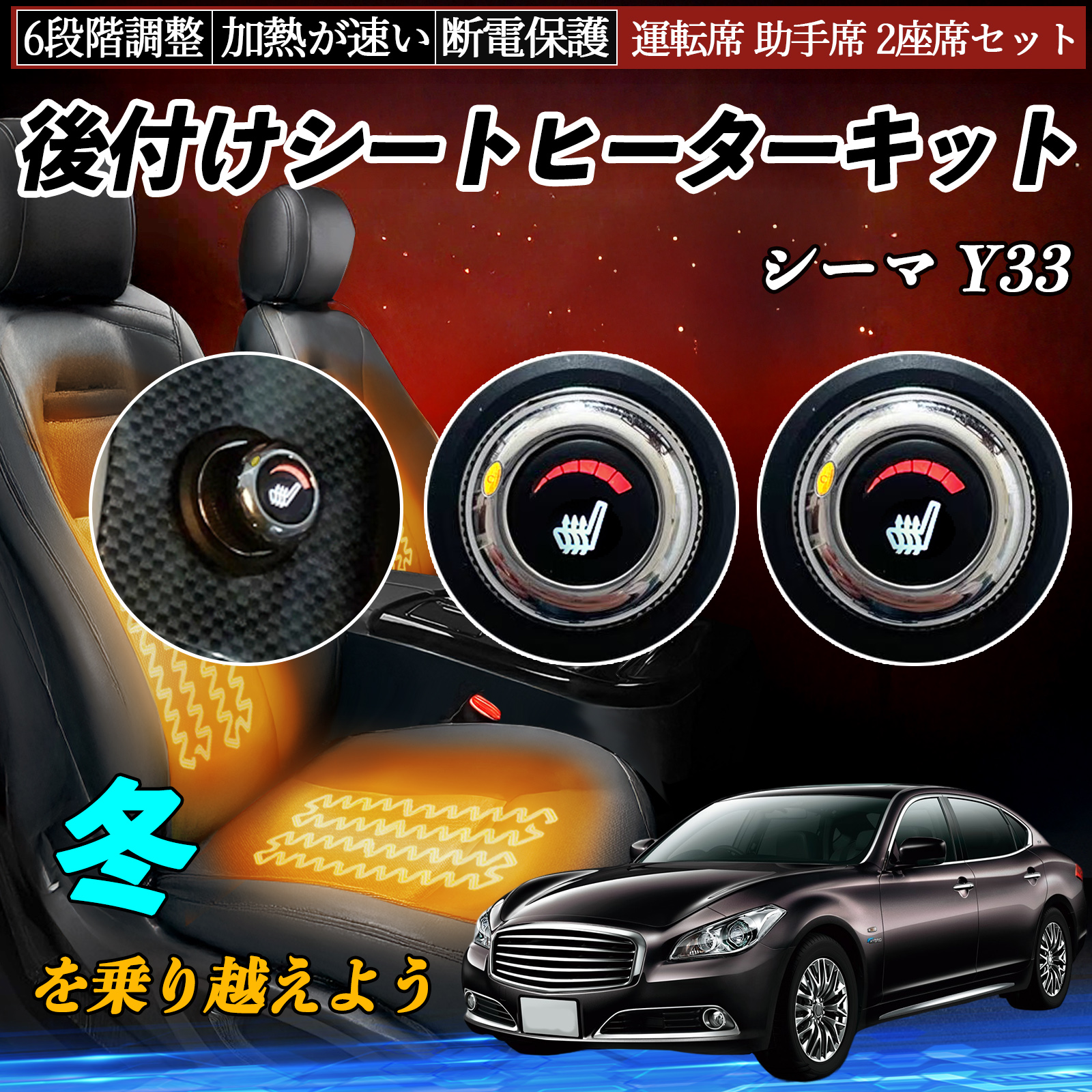 日産 シーマ Y33 後付け シートヒーターキット シート ヒーター スイッチ ダイヤル調整 6段階調整 運転席 助手席セット WeCar