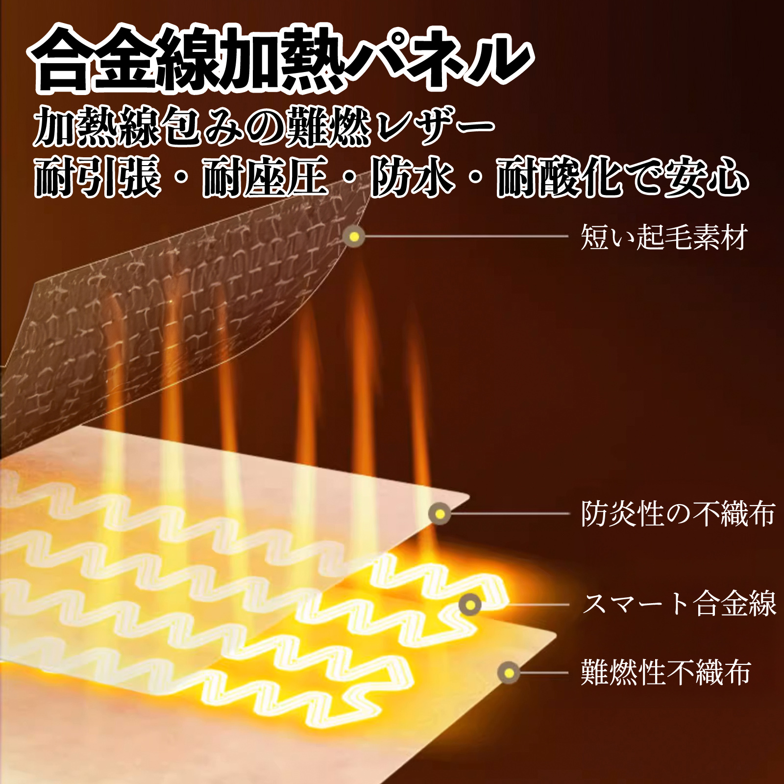 ヒーターパッド470×270mmを各席2枚ずつ、合計4枚セット。寒い日でも座席を効率よく温めます。
