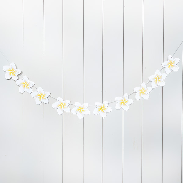 ありそうでなかった、プルメリアの花をシンプルにつなげる優しい雰囲気のガーランドです。ウェディングやバースデーなどのパーティーシーンにもマッチします。もちろんお部屋や店舗の飾りとしても、飾るだけで一気に夏気分が上がるアイテムです。