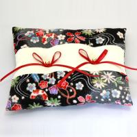 柄のちりめん生地を使った、白×黒×赤のコントラストが美しい和風リングピローです。神前挙式の雰囲気にも自然と馴染むデザインです。ハンドメイドをする場合も、直線縫いだけで簡単に仕上がります。
