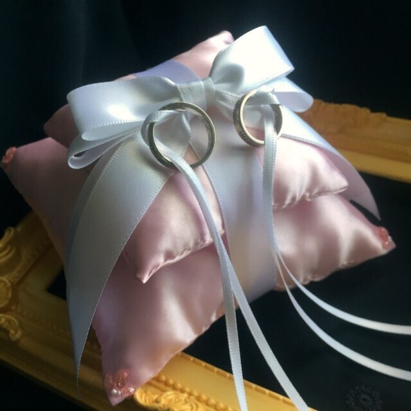 淡い色合いが素敵なベビーピンクのリングピローです。