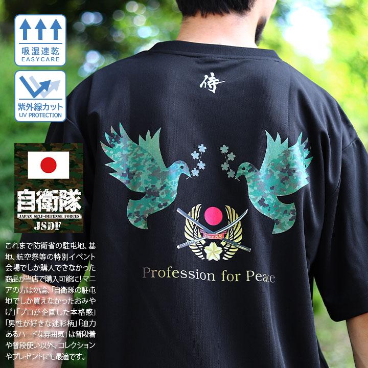 背中には、縁なし型(フルカラーのグラデーション)の桜刀と共に、陸自迷彩柄の2羽の鳩を配置。