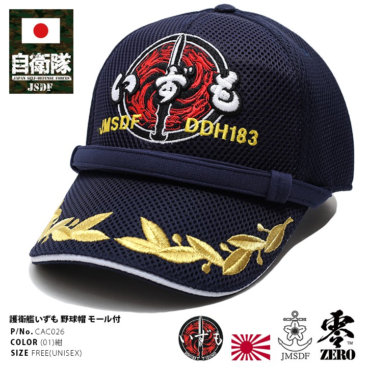 ■品番:CAC026■商品名:護衛艦いずも 野球帽 モール付■販売特典:取り扱いブランドステッカー■備考:【団体注文可能】