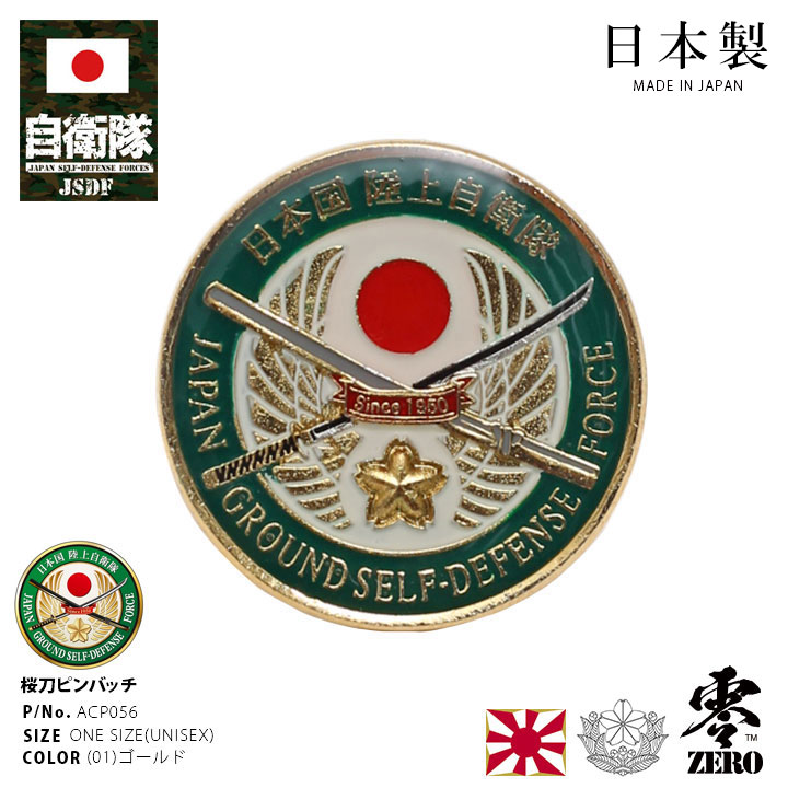 バイヤー推薦!陸上自衛隊新エンブレムの「桜刀」陸上自衛隊、海上自衛隊、航空自衛隊を管理・運営する防衛省とのコラボ商品や自衛隊グッズを広報の一環を担うものとして展開し、マニアやコレクターからも定評がある防衛省至近の本格自衛隊グッズメーカーよりおしゃれな「ピンバッジ」が入荷!