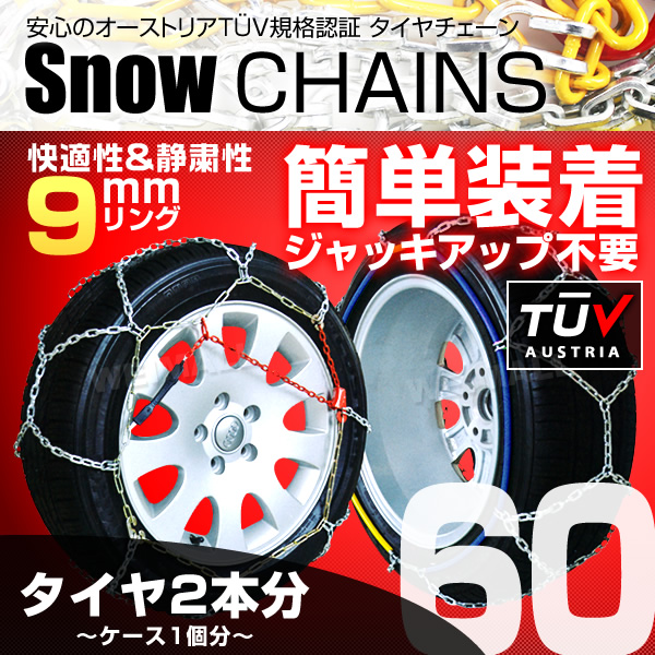 タイヤチェーン 金属 スノーチェーン 9mm 簡単 165/75R14 175/70R14 185/65R14 195/50R15 等 亀甲型 ジャッキアップ不要 金属タイヤチェーン