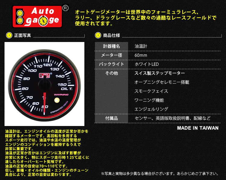 オートゲージ 油温計 RSM 60Φ エンジェルリング ホワイトLED ワーニング機能付 4
