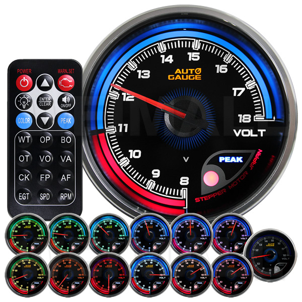 AUTOGAUGE オートゲージ 812(プレミアムシリーズ) 電圧計 60mm 日本製モーター仕様 クリアレンズ ワーニング ピーク機能 256色 リモコン付 追加メーター