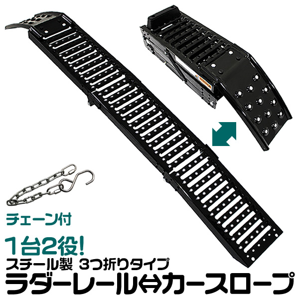 スチールラダーレール 軽量 折りたたみ 1台2役 スチールスロープ カースロープ 三つ折りタイプ