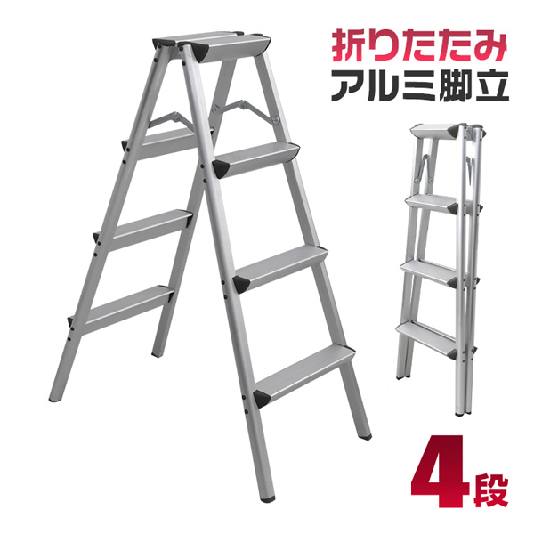 脚立 はしご 4段 アルミ 高さ100cm 耐荷重150kg 踏み台 折りたたみ 安全 足場 雪下ろし ステップラダー ガーデニング ステップ台 DIY