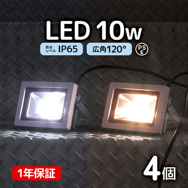 LED投光器 10W 100W相当 4個セット 防水 LEDライト 作業灯 防犯 ワークライト 看板照明 屋外 ガレージ 昼光色 電球色 一年保証