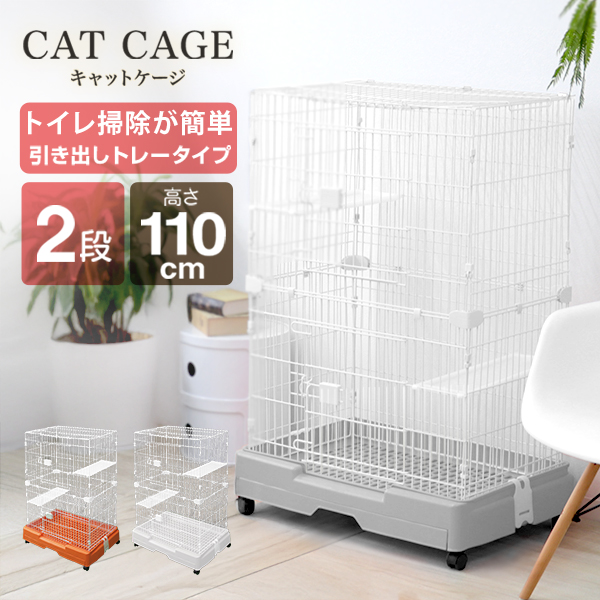 猫 ケージ 2段 キャットケージ トイレ付き ワイド スリム 大型 キャスター付き 足場付き 猫ゲージ コンパクト ペットケージ キャットゲージ おしゃれ 猫用