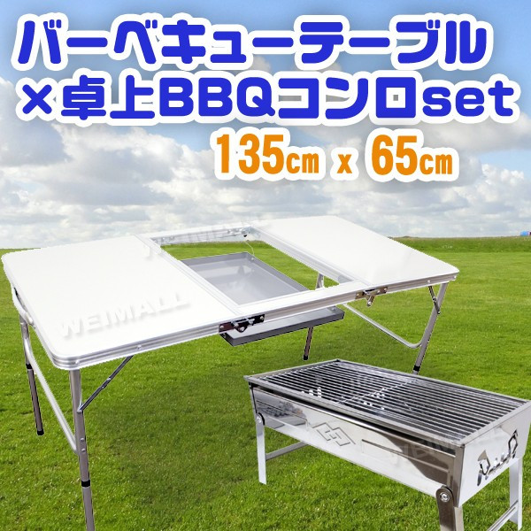 バーベキュー2点セット アウトドアテーブル コンロ セット 折りたたみ 高さ2段階調整可能 アルミテーブル アウトドア キャンプ MERMONT ウェイモール WEIMALL