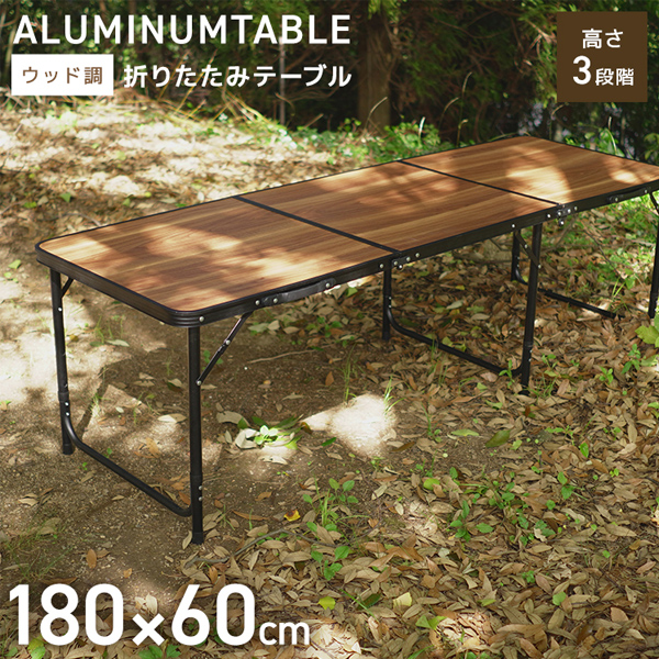 アウトドアテーブル 折りたたみ 180cm 木目調 高さ調節可能 ローテーブル アウトドア 防水 アルミ レジャーテーブル キャンプ MERMONT