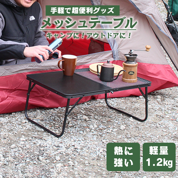 ( メッシュ 黒 レジャーテーブル メッシュローテーブル ローテーブル 折りたたみ お花見 折り畳み 折りたたみテーブル バーベキュ BBQ 安い おすすめ 軽い ソロ 送料無料 おしゃれ ピクニック 焚火 無骨 )