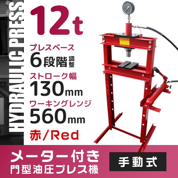 油圧プレス 12トン 油圧プレス メーター付 門型プレス機 12ton 赤 レッド