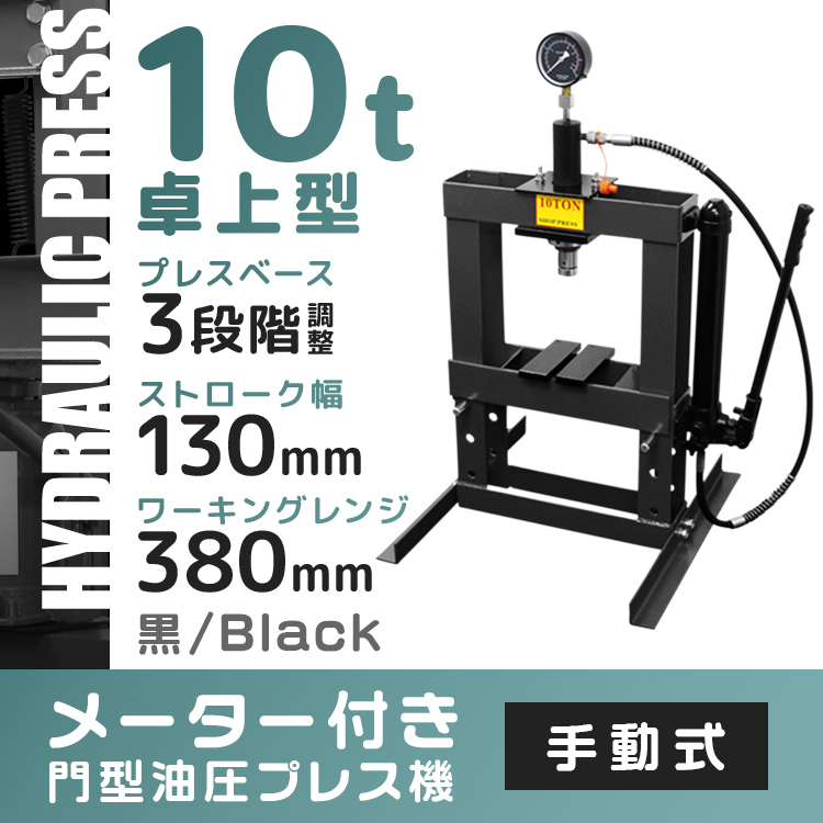油圧プレス 10t 油圧プレス機 メーター付 門型プレス機 黒 10トン