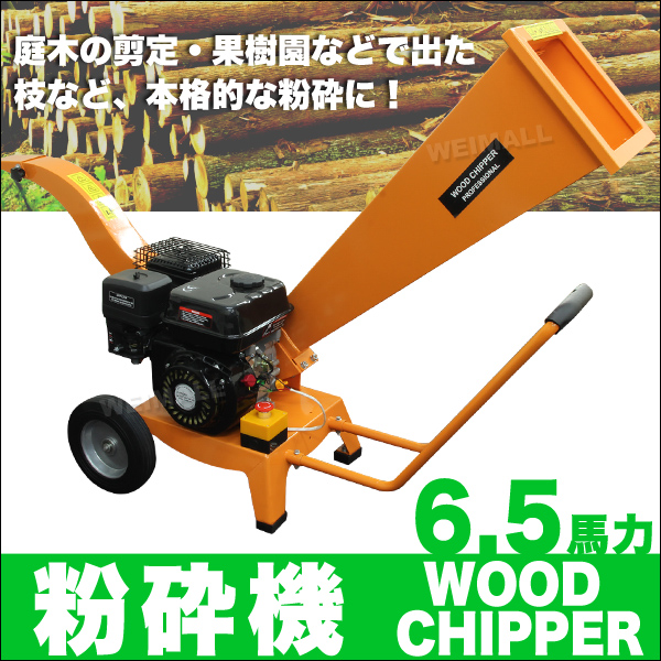 粉砕機 ウッドチッパー エンジン粉砕機 6.5馬力 ウッドチップ ガーデンシュレッダー 木材 家庭用 業務用 ノーパンクタイヤ ガーデンシュレッダー 木材粉砕機