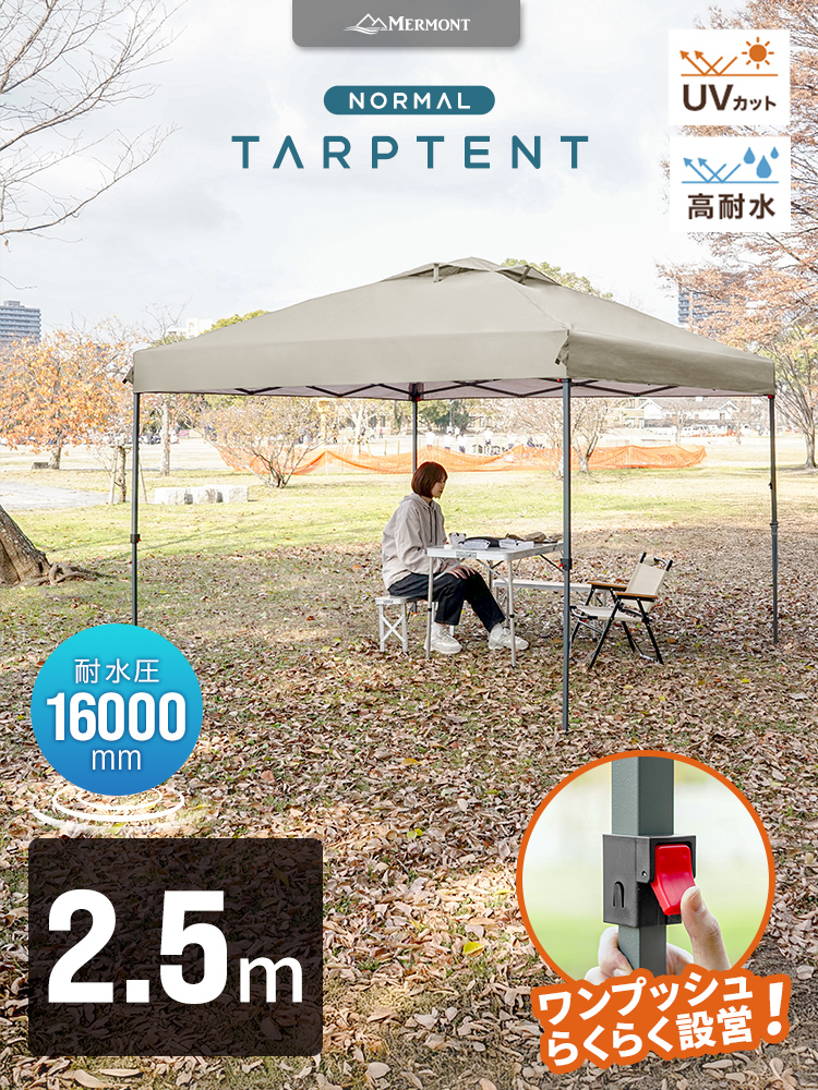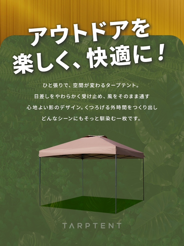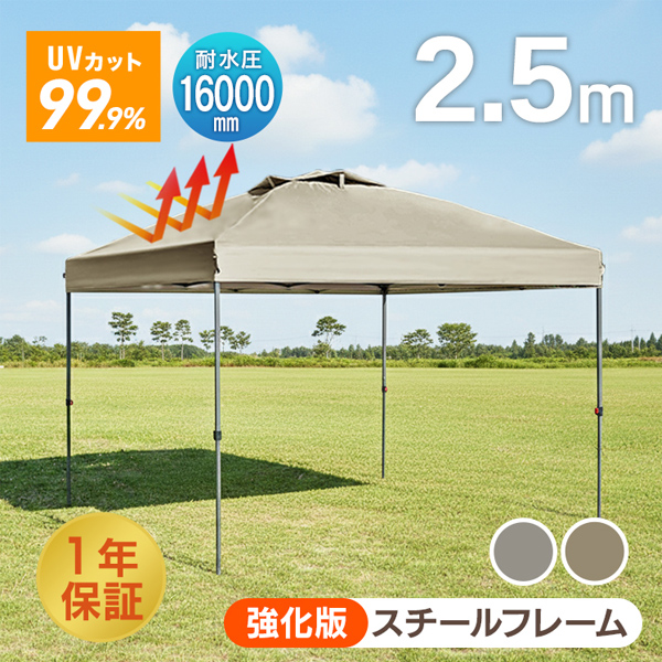 タープテント ワンタッチ 2.5m×2.5m 簡単 防水 遮光 UVカット 頑丈 日よけ アウトドア バーベキュー 1年保証