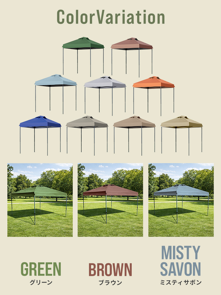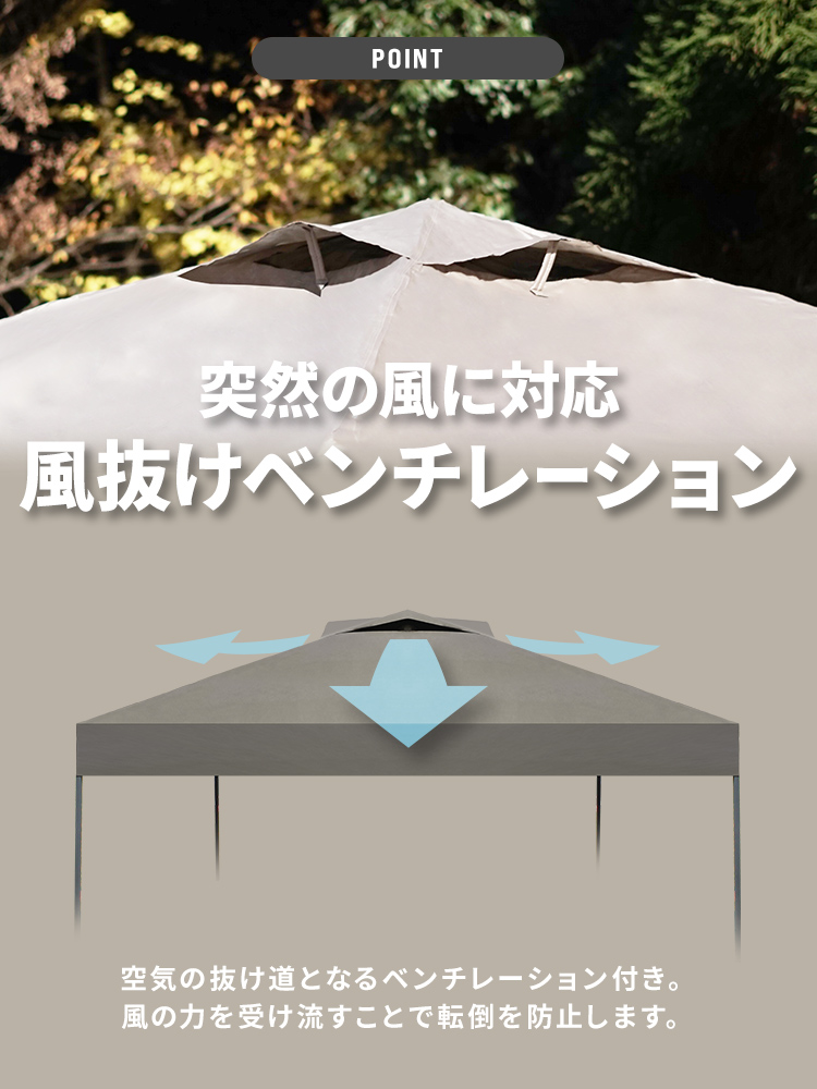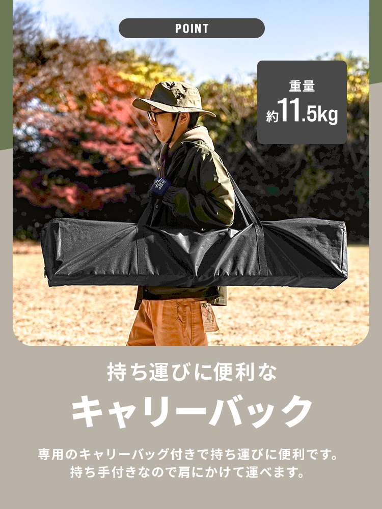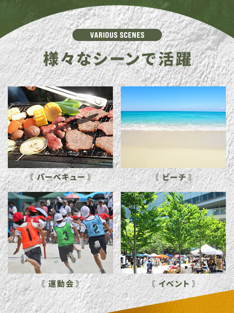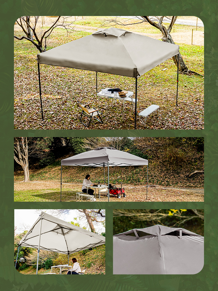 頑丈なスチールフレームと150Dオックスフォード布(シルバーコーティング)を採用し、強い日差しや熱をしっかり遮断します。