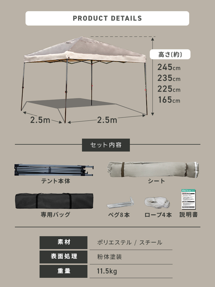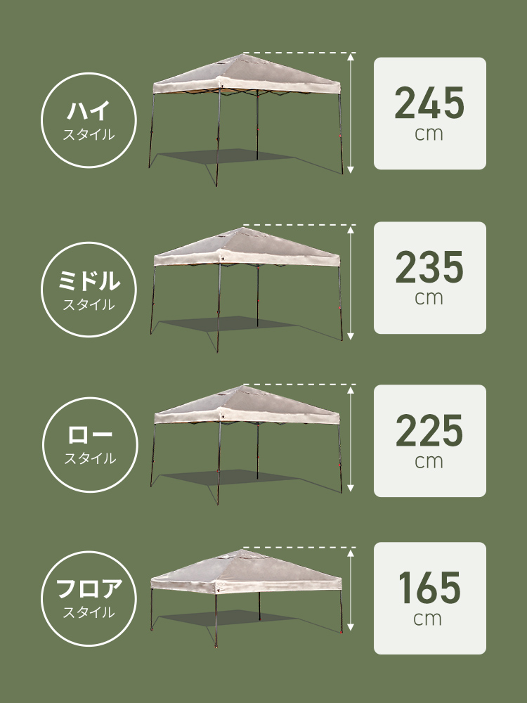 サイズ(約):2.5m×2.5m×1.65m〜2.45m