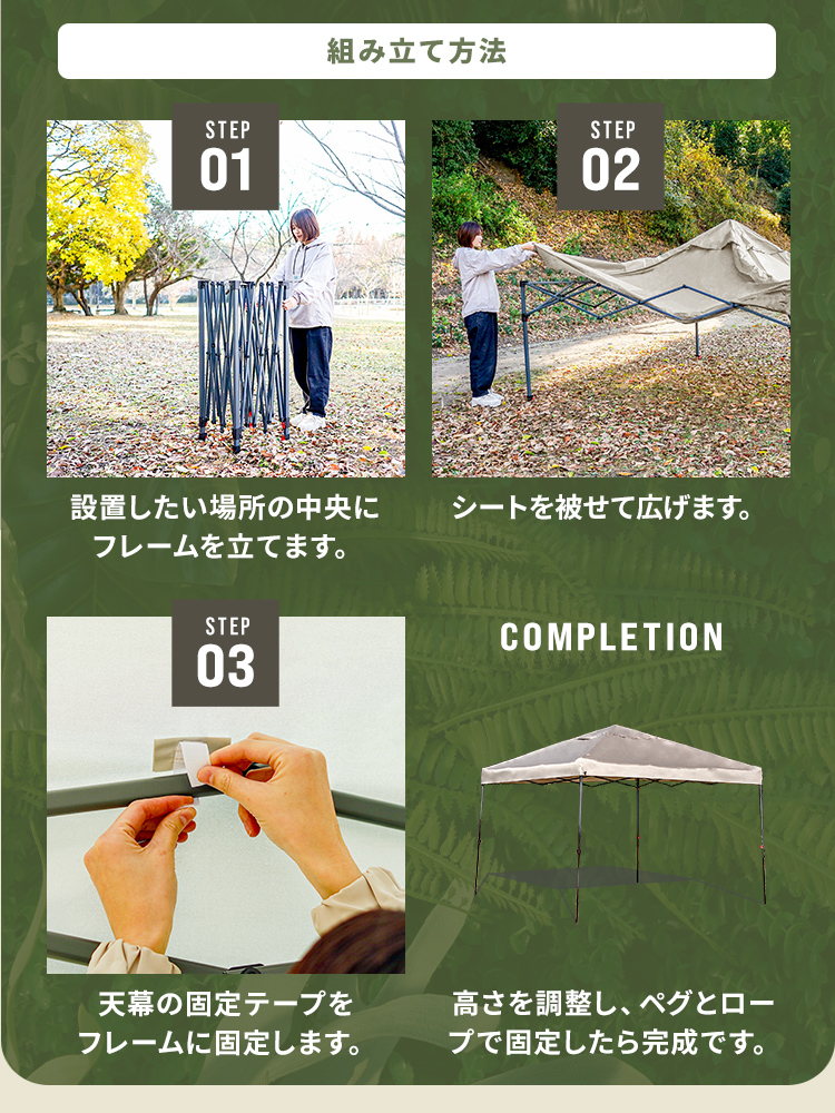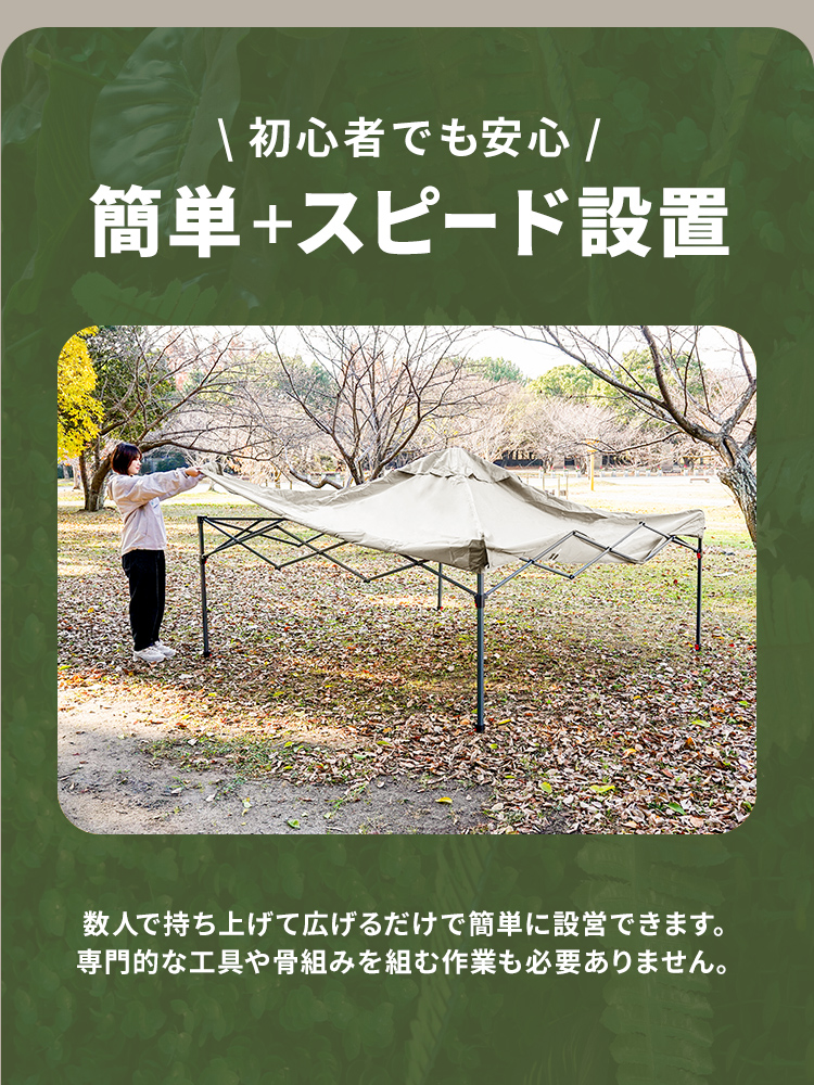 広げるだけなので初心者や女性でも簡単設営が可能!