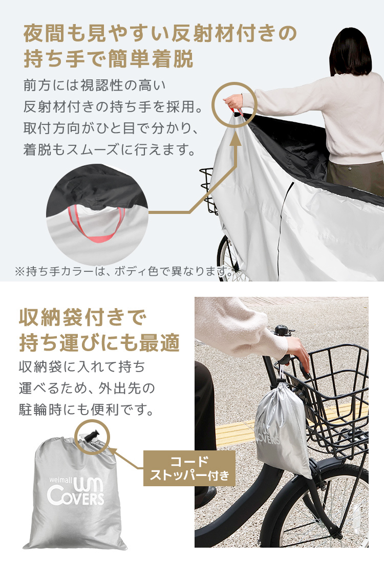 横開きで出し入れ簡単な自転車カバーです。