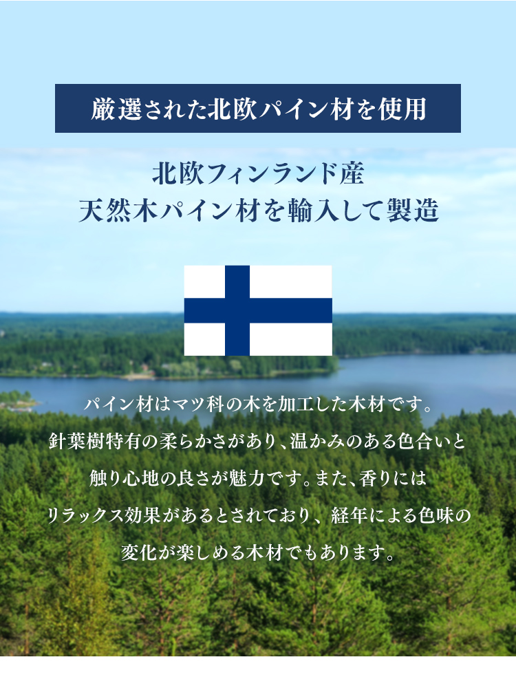 天然木のナチュラル質感が北欧インテリアにマッチ。