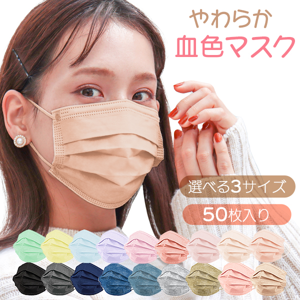 血色マスク 不織布 マスク 3サイズ 不織布マスク 小さめ 立体マスク 10枚ずつ個包装 大人 こども 血色カラー カラーマスク 使い捨て やわらかマスク かわいい