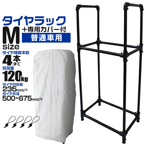 タイヤラック タイヤ 収納 保管 タイヤ収納 スリムタイプ タイヤラックカバー付き 4本収納 Mサイズ 普通自動車用 スペアタイヤ