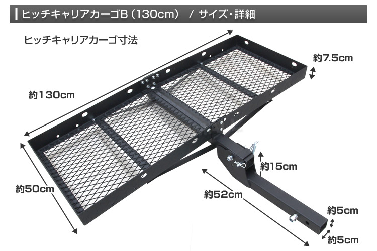 ヒッチキャリアカーゴ 130cm Type-B 最大積載226kg 折り畳み式 車用 ヒッチメンバー 2インチ アウトドア カスタム 自動車 WEIMALL