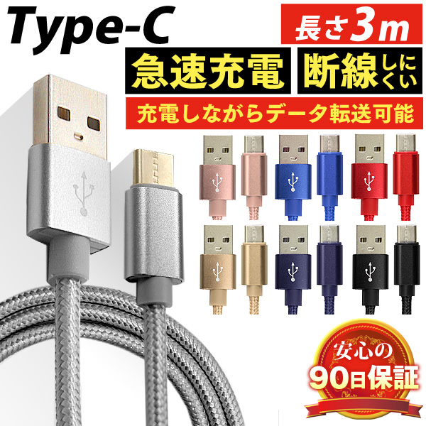 USB Type-C 充電ケーブル 長さ3m 急速充電 iPhone17 air 16 強化素材 データ転送 Android USB ケーブル iPhone タイプC 充電 コード 充電器 追跡可能 タイプシー