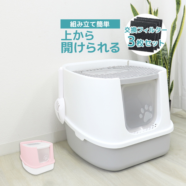 キャットトイレ 交換用フィルター3枚付き 猫用トイレ 手入れ簡単 猫砂飛散防止 におい対策 引き出し トイレ用品 組み立て式 おしゃれ 猫用グッズ ペット WEIMALL