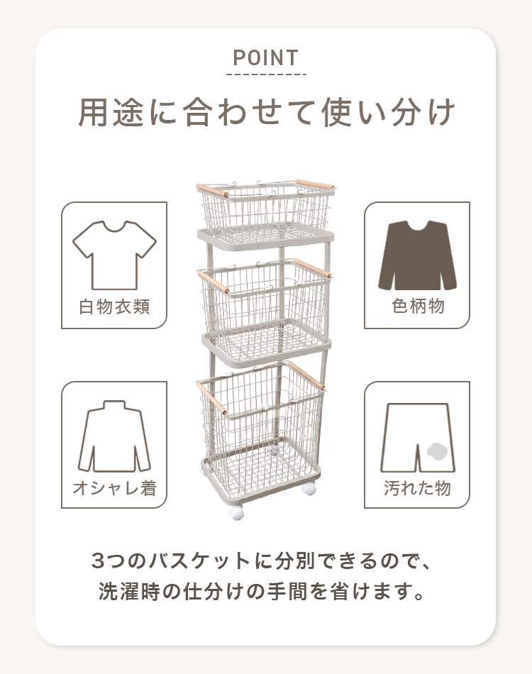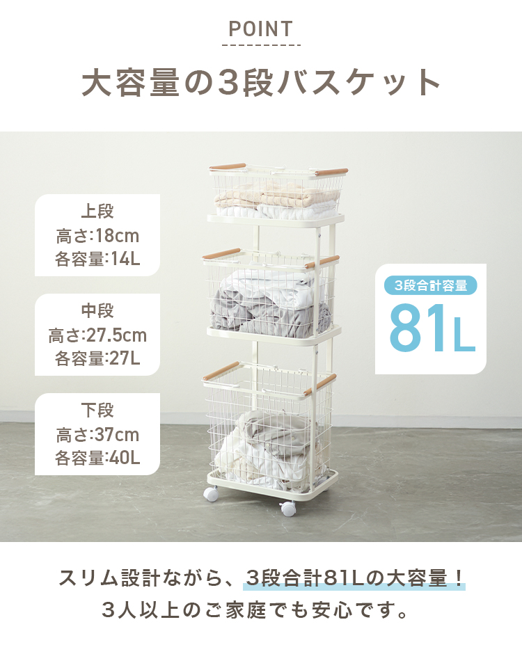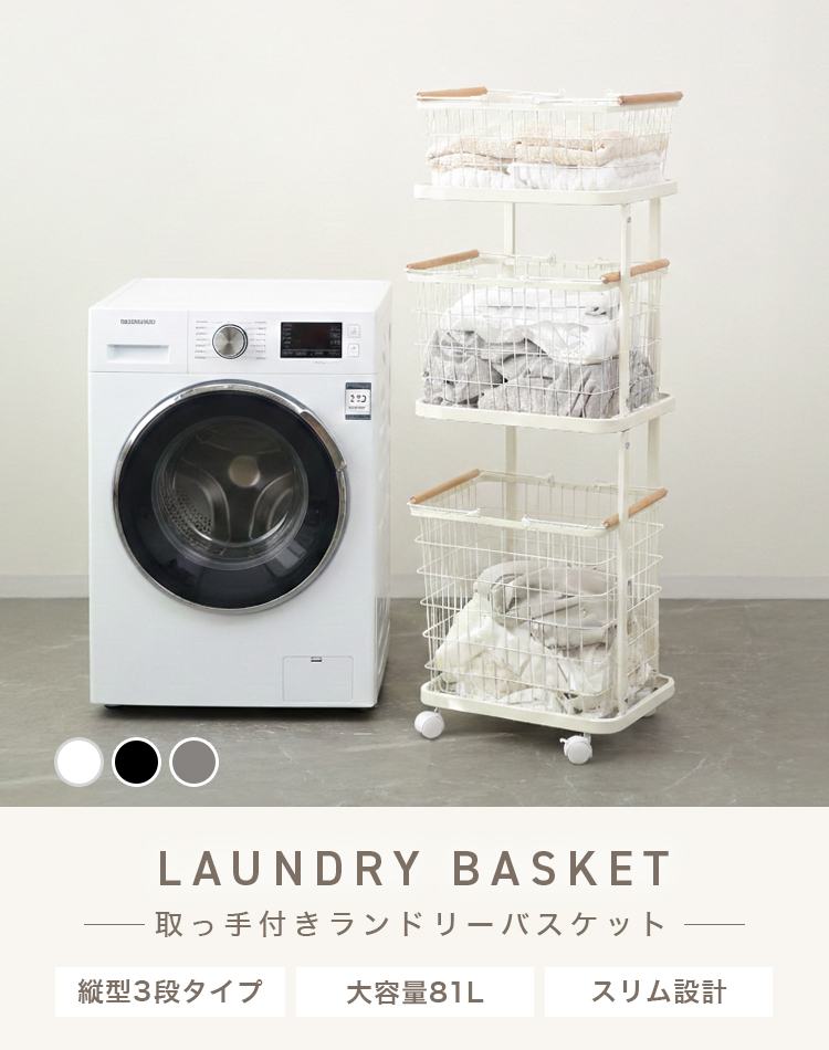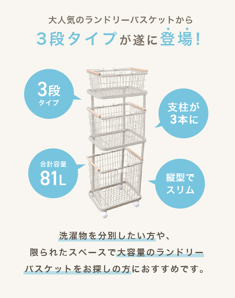 縦3段ランドリーバスケットです。