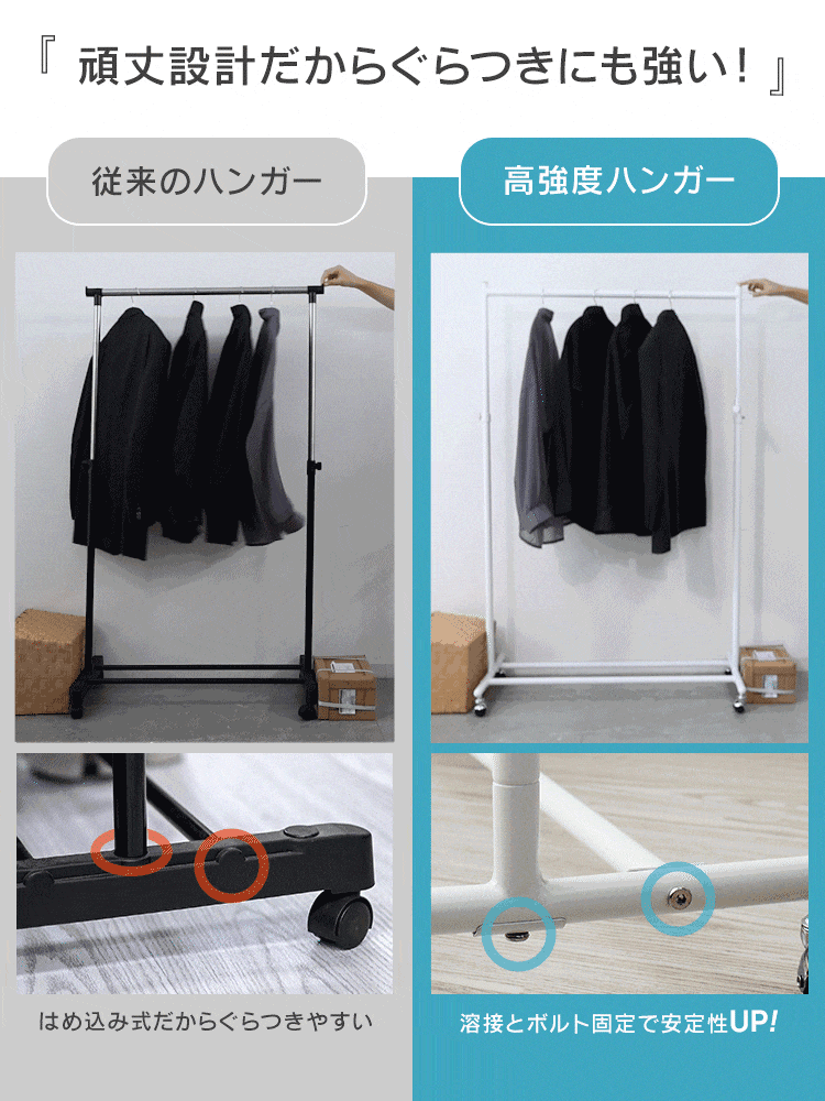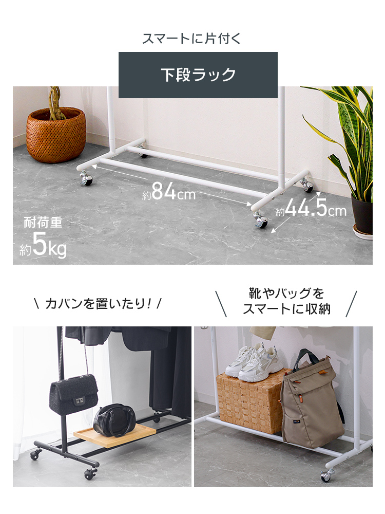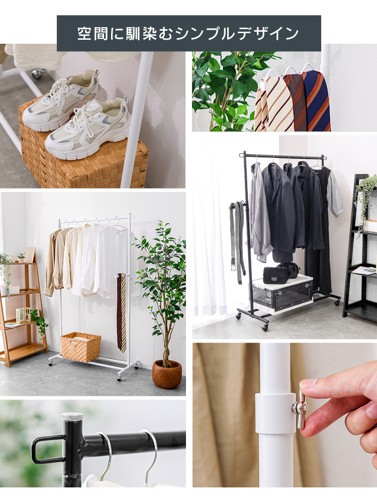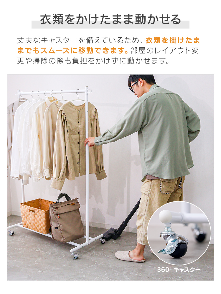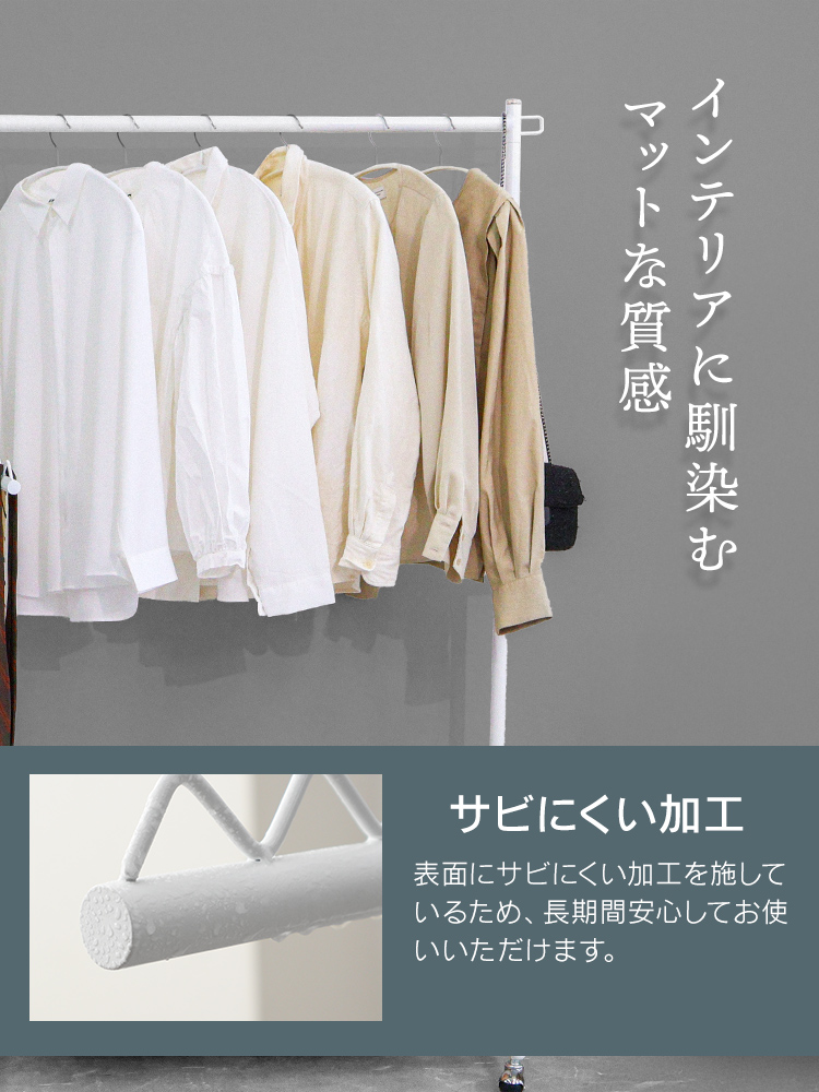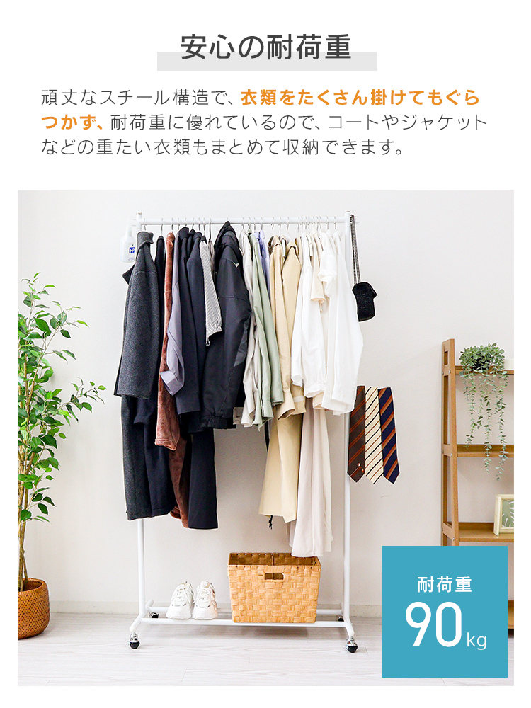 \耐荷重90kgの頑丈設計!スリムに使えるハンガーラック/