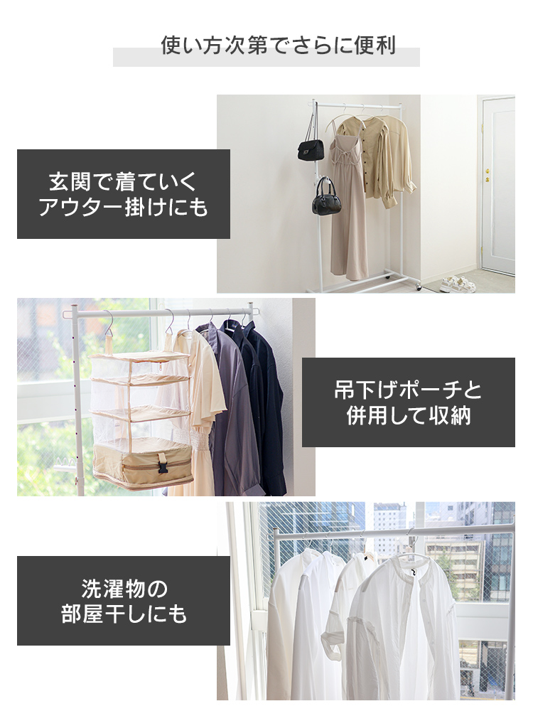 ロング丈もラクラク掛けられるので、ワンピースや長めのコートもすっきり収納。