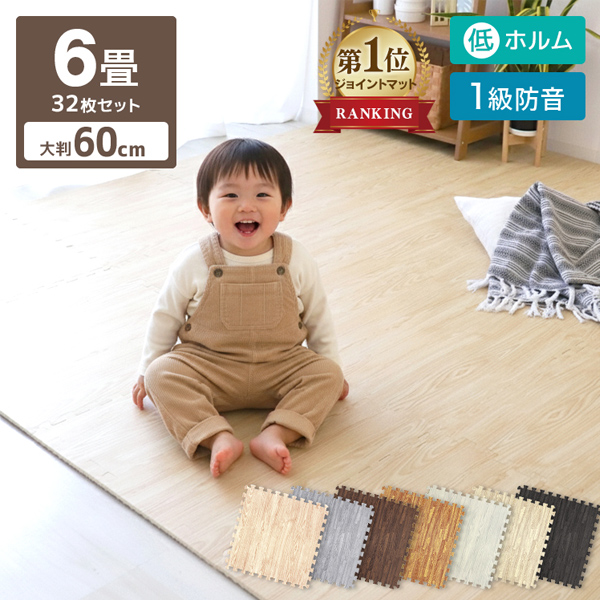 ジョイントマット 大判 6畳 厚手 60cm 32枚 木目調 防音 防水 床 プレイマット クッションマット パズルマット フロアマット ベビー 子供 赤ちゃん 犬 ペット