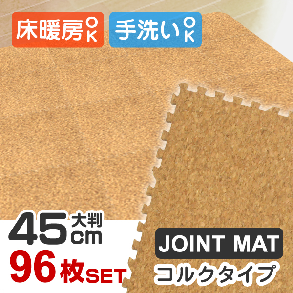 コルクマット ジョイントマット 大判 45cm 96枚 約10畳 防音 床 クッションマット ベビーマット 大粒コルク 子供 ペット 犬 猫 パズルマット ペットマット