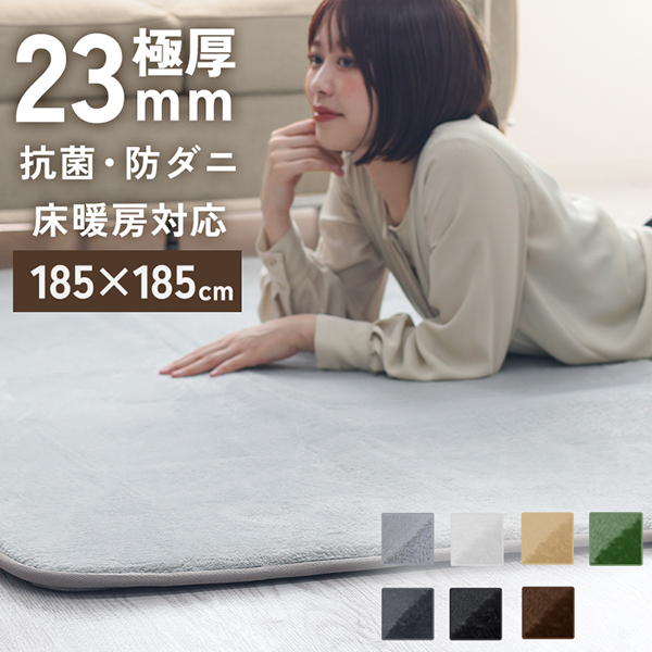 ラグ カーペット ラグマット 洗える 2畳 185x185cm 厚手23mm 極厚 おしゃれ 低反発ラグ 抗菌 防ダニ 滑り止め付き 絨毯 オールシーズン 夏 秋 冬 北欧