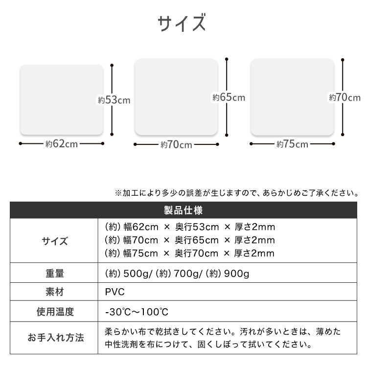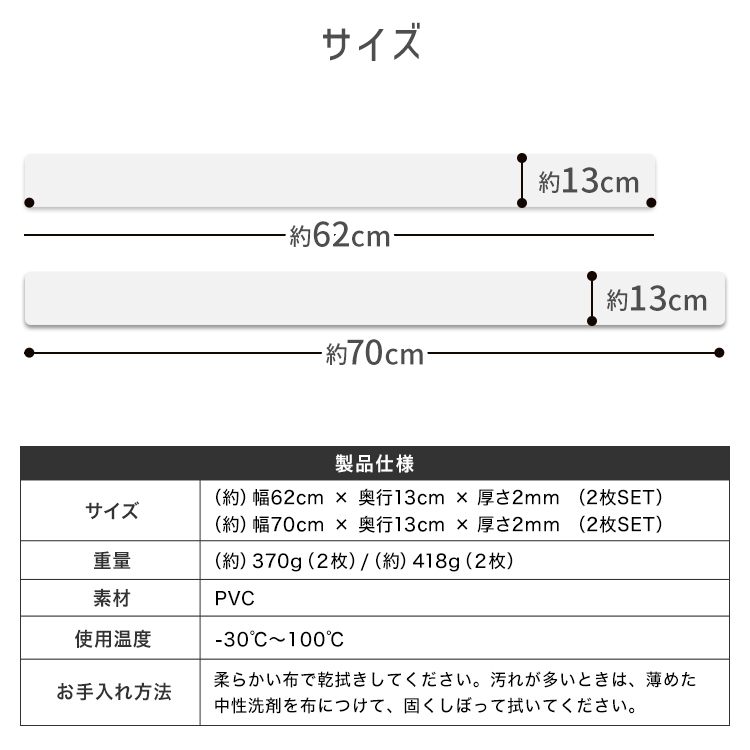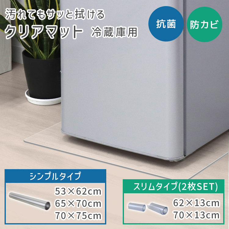 冷蔵庫マット 透明 クリア 70×75cm 62×13cm S M L 防カビ 防水 撥水 傷防止マット 2枚入り PVC クリアマット 床保護 スリム 冷蔵庫用 カット可能