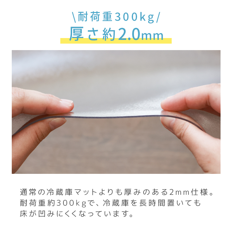 冷蔵庫の重みによるキズや凹みの防止する、冷蔵庫の下に敷くクリアマットです!