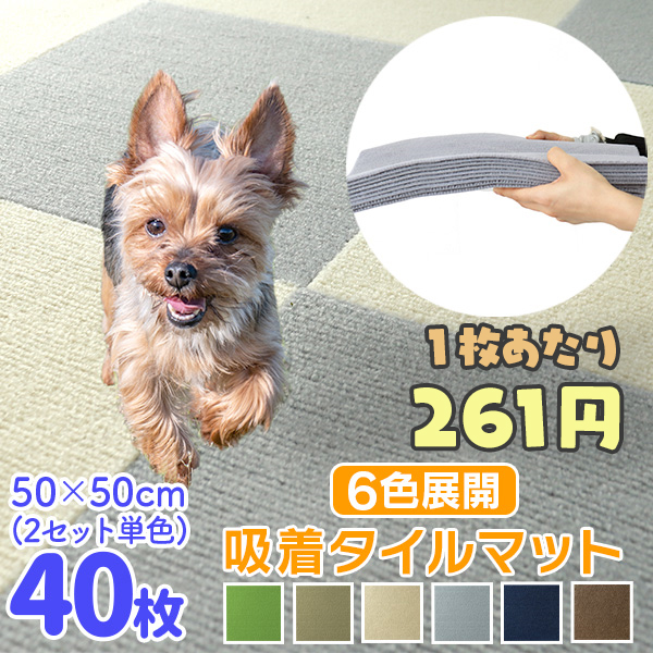 タイルマット タイルカーペット 吸着タイル 40枚 50×50cm 全4色 単色 洗える 防音 ベビー 子供 赤ちゃん ペット 吸着 フロアマット カーペット