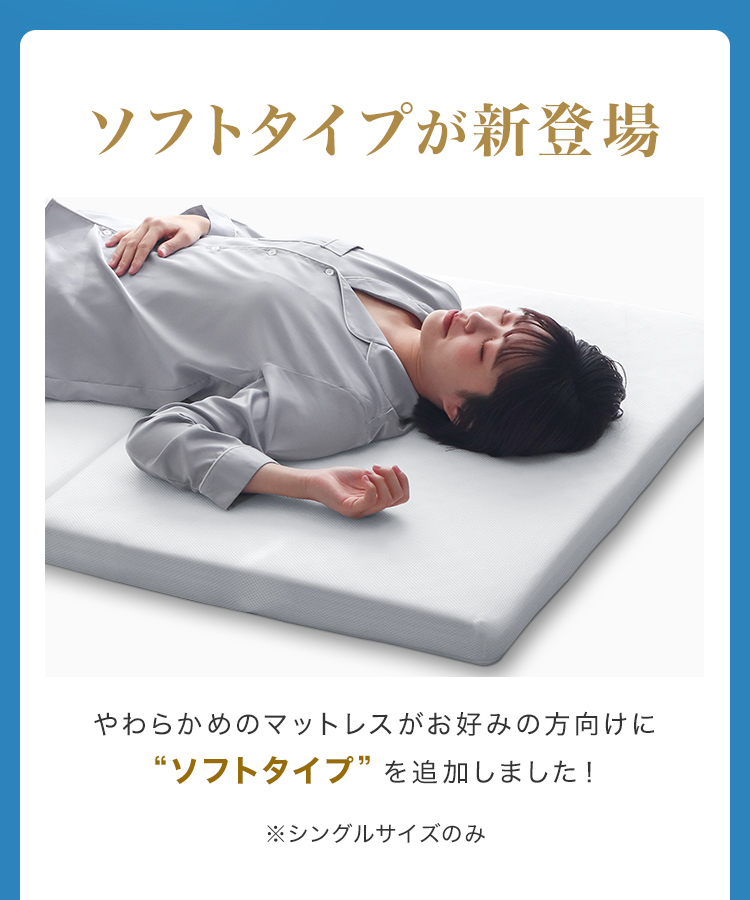 優れた体圧分散によって、腰や背中に集中しがちな身体の圧力を分散し、理想の寝姿勢を保ちます。