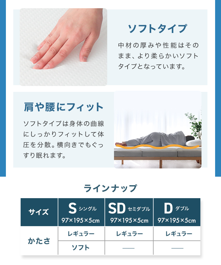 ・サイズ(約):97×195×5cm(シングル)