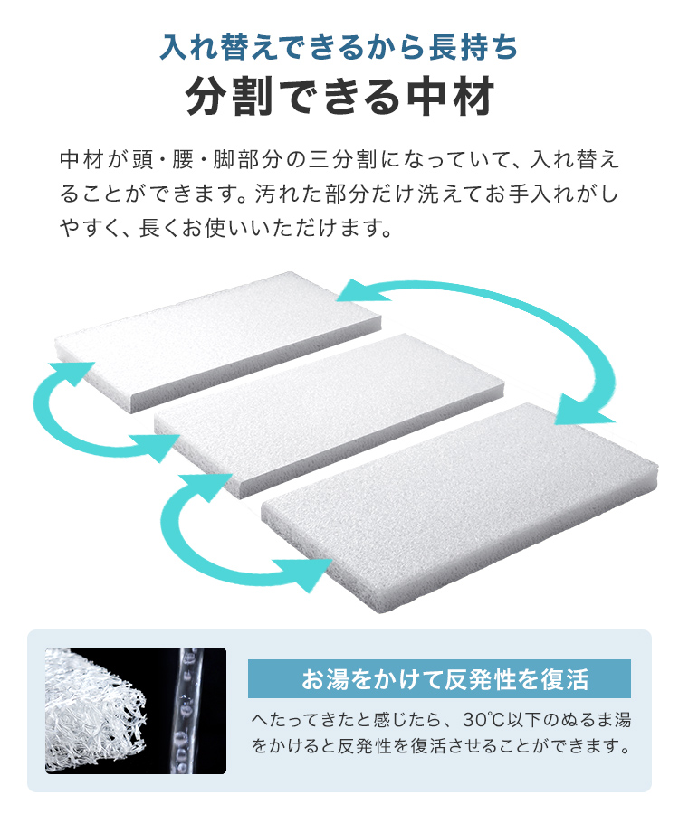 カバーはもちろん、中材まで洗えていつでも清潔に使用できます。